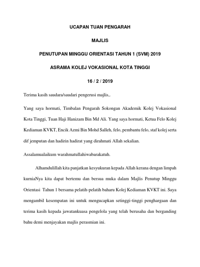 Teks Ucapan Majlis Penutup Suaikenal By fu_Kenzie79 04 Apr, 2022 Post a Comment Teks Ucapan Pengarah Majlis Penutup Suai Kenal Tahun 1 Pdf Teks Ucapan Majlis Penutup Pdf Teks Ucapan Pengarah Pdf Teks Ucapan Majlis Penutup Minggu Suai Kenal Share No comments for "Teks Ucapan Majlis Penutup Suaikenal"